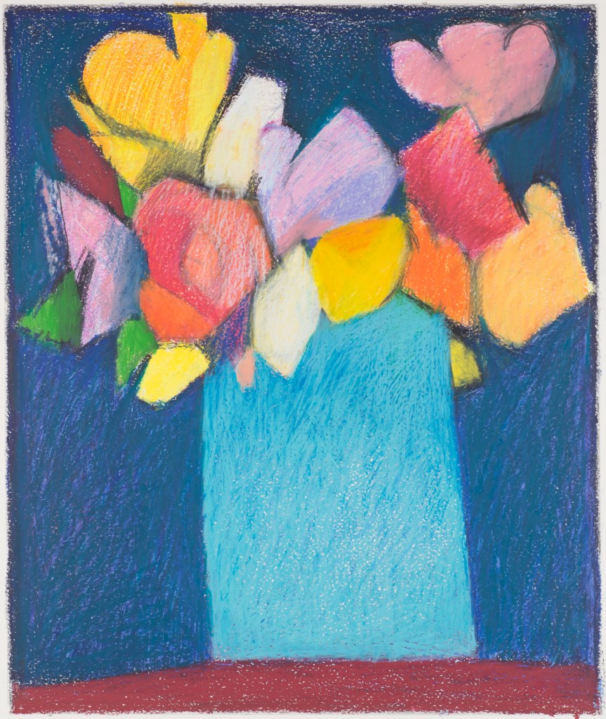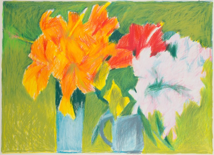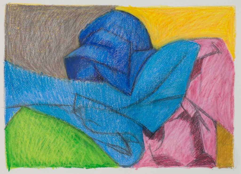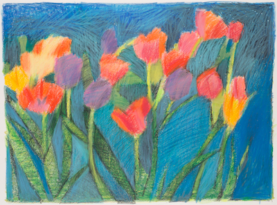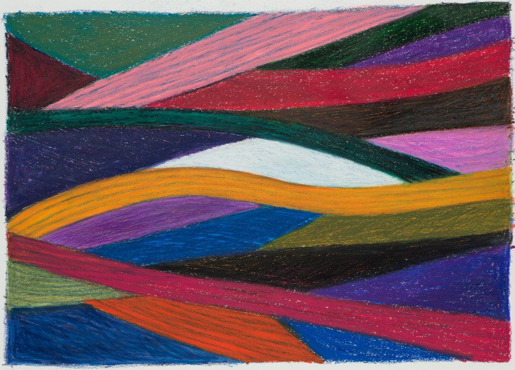 Through the years, Paul Harris returned to his wax and pigment drawings with subjects ranging from still lifes to abstracts, from figures to landscapes and many more in between. In fact, although known as a sculptor, his go-to medium remained the art crayon.