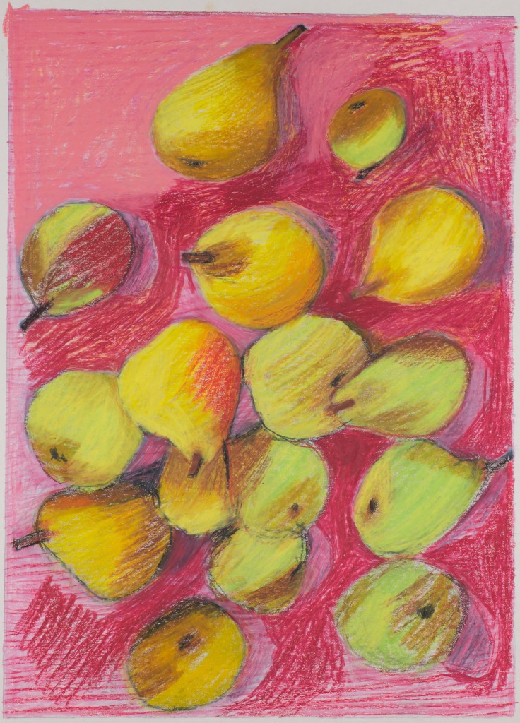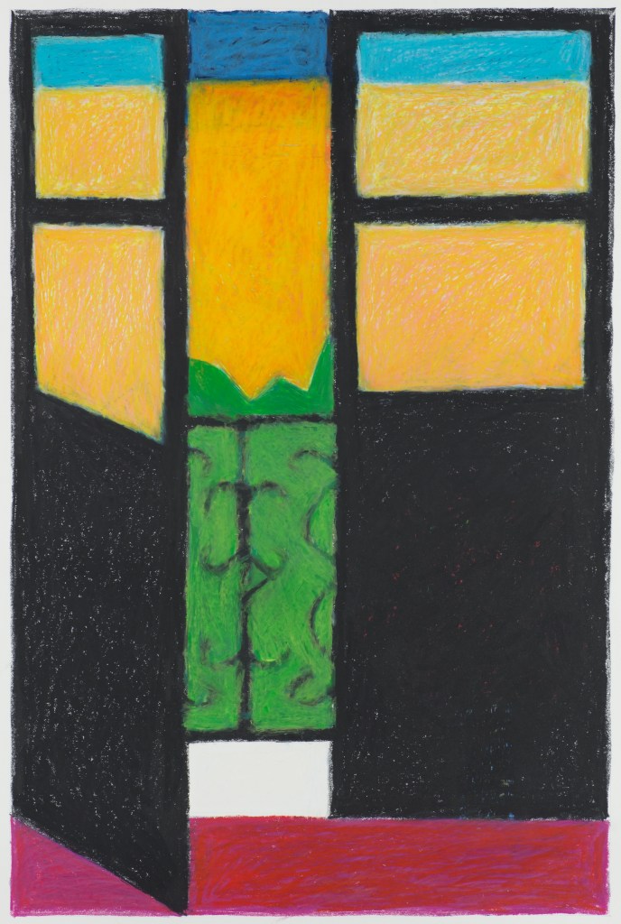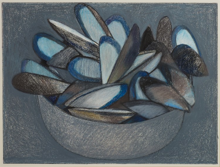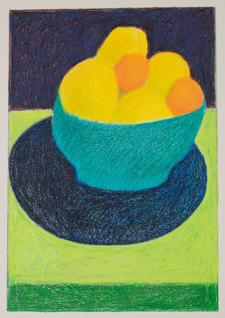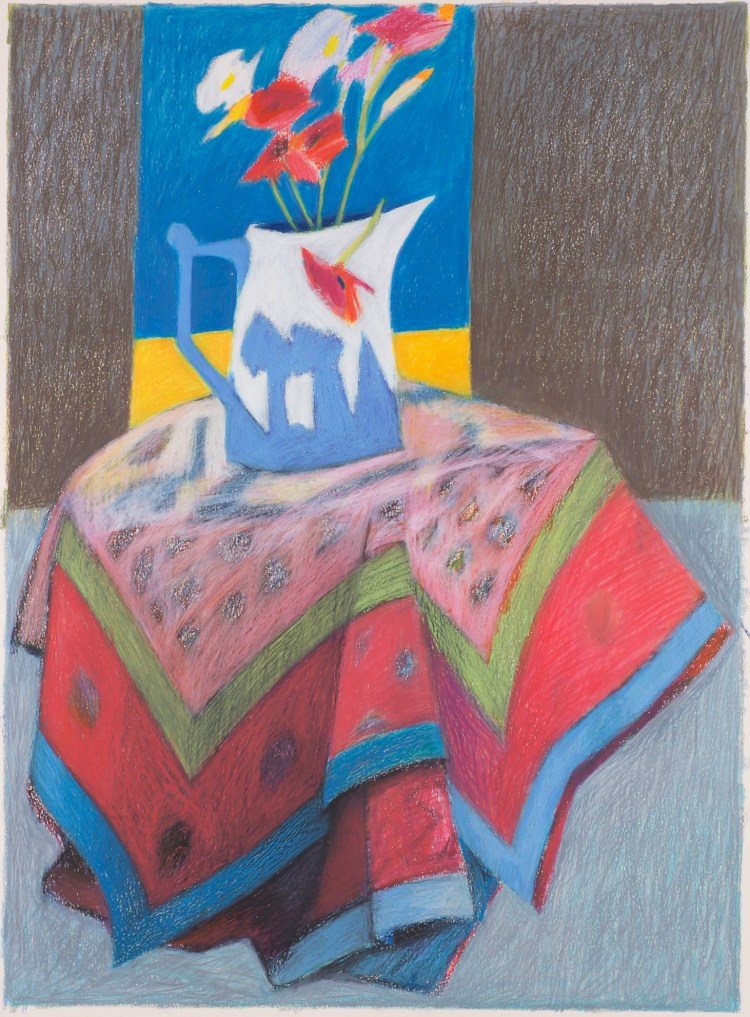 Through the years, Paul Harris returned to his wax and pigment drawings with subjects ranging from still lifes to abstracts, from figures to landscapes and many more in between. In fact, although known as a sculptor, his go-to medium remained the art crayon.