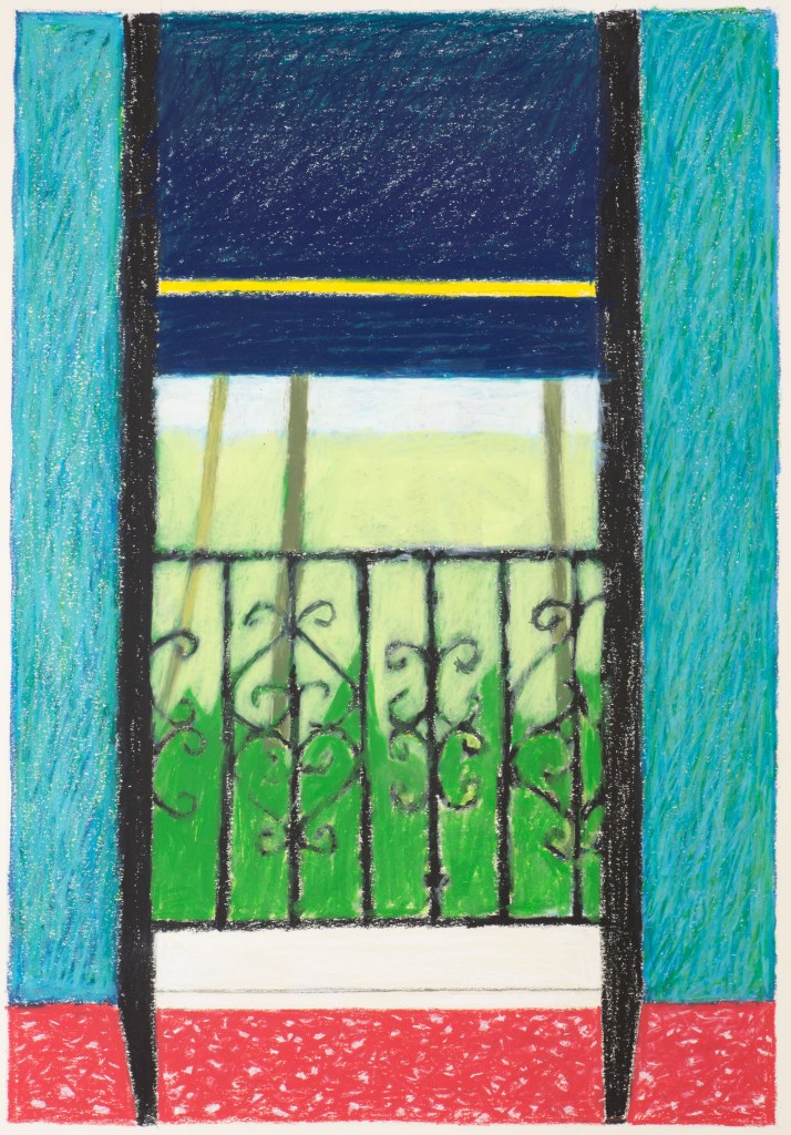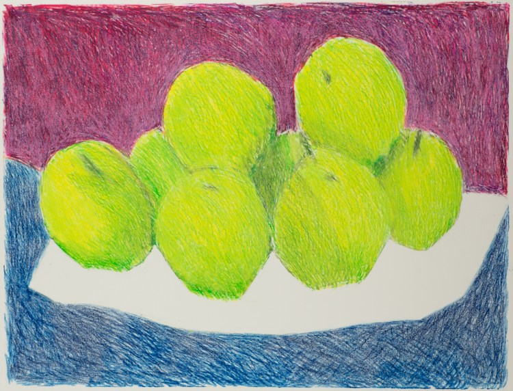 Harris’ drawings pulsate with energy as the movement he put into the pieces, etched into the composition, can be felt as much today as the moment they were created. The lines, nearly frantic with color, keep the eye traveling, yes, but they also keep the mind engaged in the images, searching, reaching, in continuous dialog with the viewer.