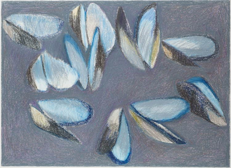 Harris, always concerned with pattern and texture, understands the spatial relationship inherent in a finite drawing. These pieces, intimate and compelling, relay an accessible, inspirational narrative. As one artist noted, “they make me feel like I can do this.”
