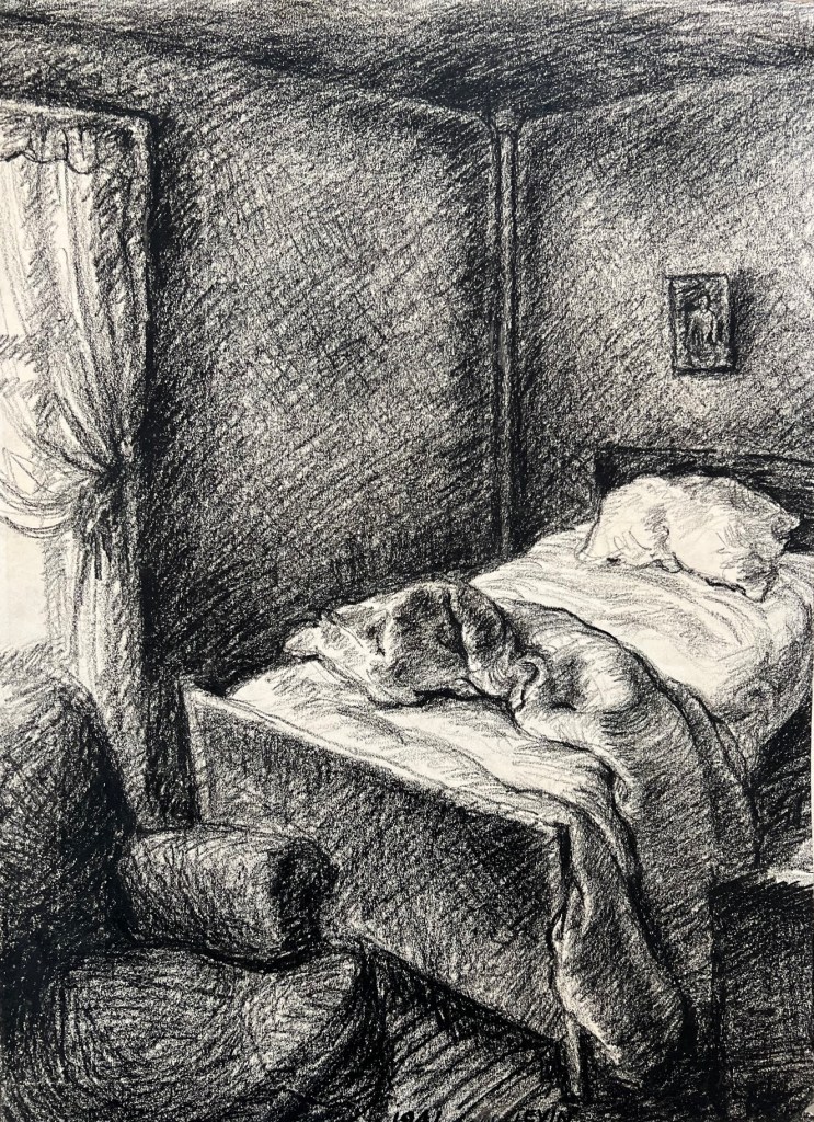 This retrospective of Levin’s work is meant to mark 100 years of Levin’s life and is the first of its kind in a museum setting. Levin fought in World War II and survived, experienced the fervor of modernism in Europe and the United States, and received an education in the arts post WWII through a G.I. Bill—also known as the Service Men’s Readjustment Act of 1944. With access to education, a passion for art, and a means to live, Morton Levin created art, lived art, and loved through art. Though his post WWII artistic contemporaries in the United States were delving into abstract expressionism, minimalism, and conceptualism, Levin was a contemporary artist devoted to the human figure. Early works, war drawings, paintings, prints, etchings, woodcuts, and engravings fill the exhibition space. The intent is to draw attention to his imaginative work and diversity of styles, as well as the profound understanding of artistic techniques in Levin’s career as an artist.