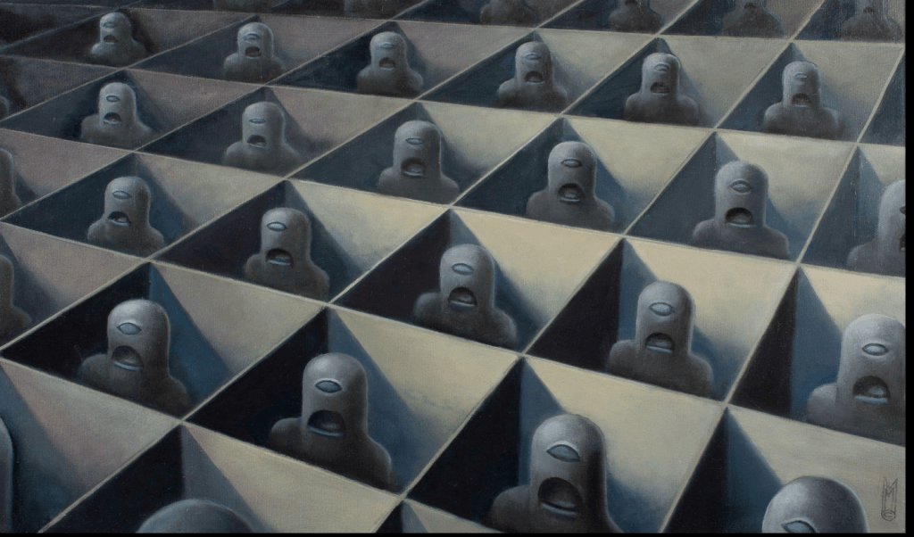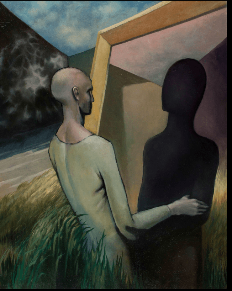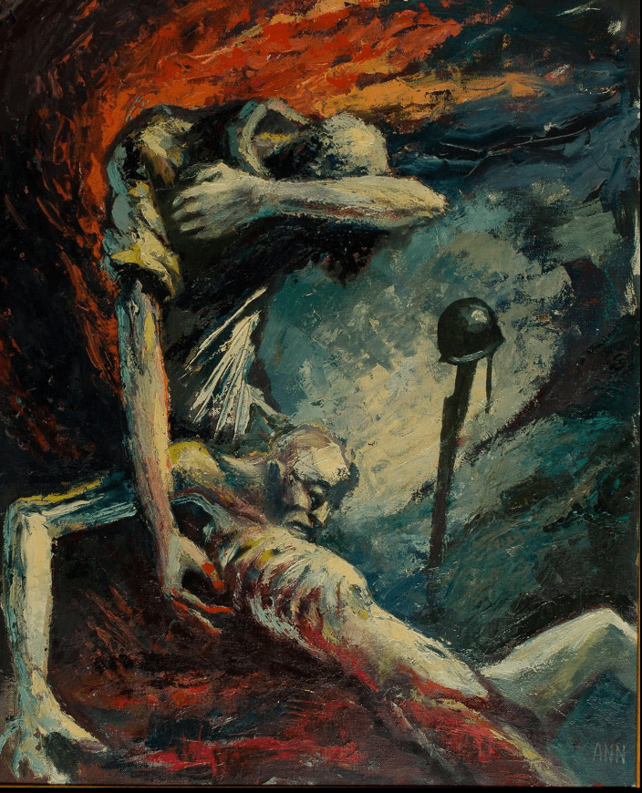 He accepted that “surrealism” fit many of his paintings. As a youngster he was fascinated by the surrealists’ work at the Chicago Art Institute. Surrealism was a reaction to the horrors of World War I; it is dreamlike and probes the unconscious…our hidden thoughts and dreams. Messing’s WWII experiences probably affected him like those artists after WWI. Both generations of young soldiers saw abhorrent things that they couldn’t “un-see”.