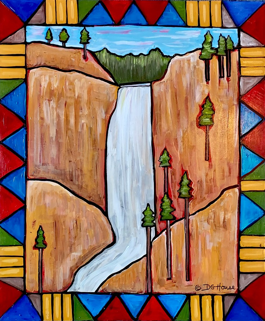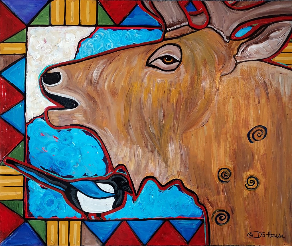 Though DG House is a member of the Cherokee NE Alabama tribe, since moving to Montana she has primarily focused on capturing the wonder and majesty of Yellowstone wildlife. Simultaneously, she pays homage to Indigenous people of the past and present through native symbolism and pattern references.