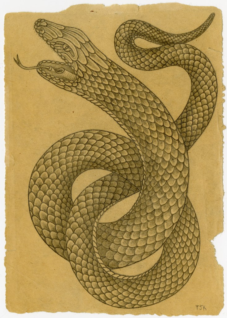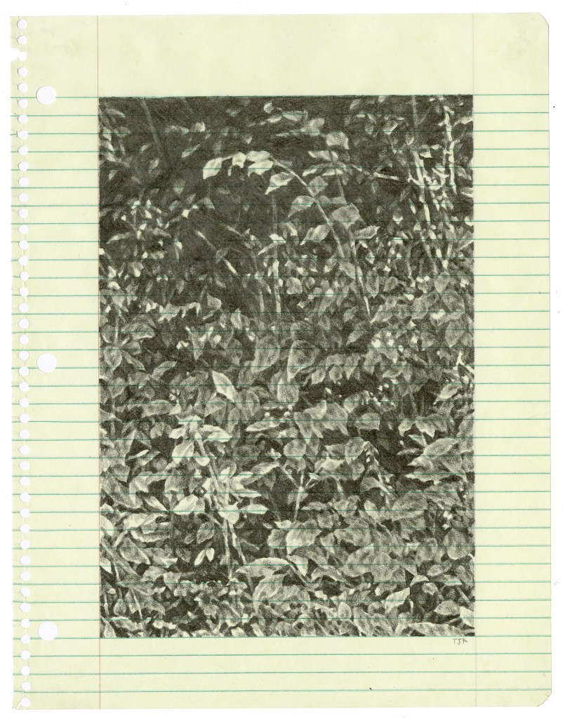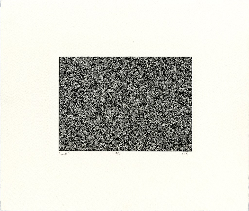 His artist statement says, “Tyler is an artist with a medieval compulsion for precision. He modestly passes his days meditatively engrossed, gouging away, much like 15th century knuckle draggers in Antwerp. Some days he doesn’t even feel the need to put shoes on. He takes his time and produces relief prints and drawings depicted sharply retaining hypnotic vibration. When not creating images, his so-called purpose is to locate obsolete neighborhood abstractions, or antiquated rural myths. He also takes cartoon clouds very seriously.”