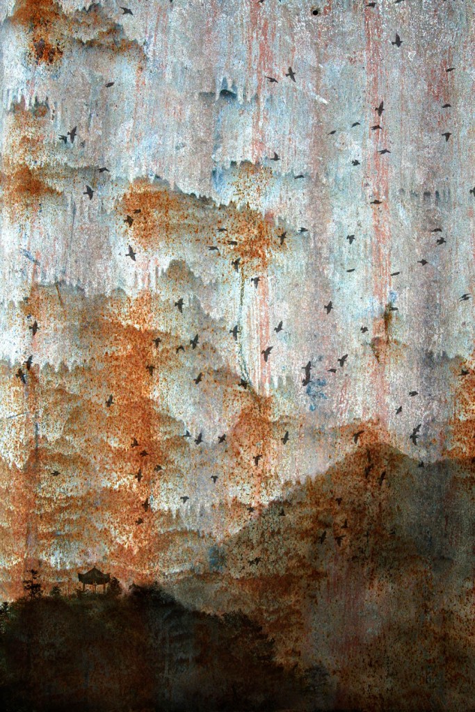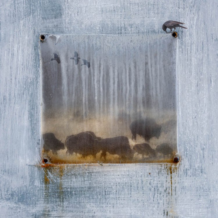 While Blackwood has photographed all over the US and around the world, he has lived in Bozeman most of his adult life, centering his artistic focus on southwest Montana and the Greater Yellowstone ecosystem. Starting with images from Yellowstone and its environs, he incorporates bits and pieces of photographic memories from his experiences elsewhere, recontextualizing them to form surreal combinations. Corvids (the family of birds containing crows, ravens, and magpies) are a recurrent theme in the work as are mandalas. Another theme involves imagining how master painters would react to the Yellowstone environment; creating a sub-collection simply called “The Masters in Yellowstone.”